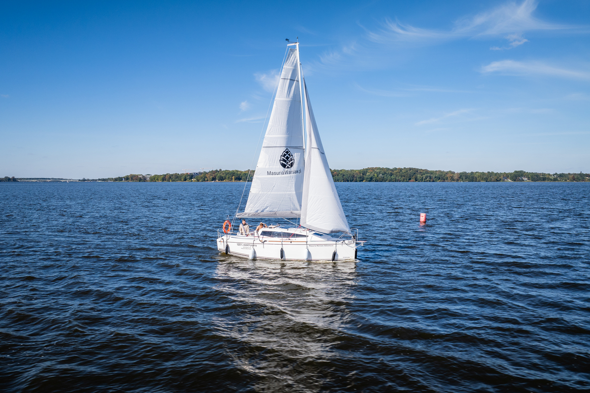 Masuria Warsaw Adventure możesz wynająć, jeśli posiadasz patent żeglarski. Przed odbiorem przeprowadzimy dla Ciebie krótkie szkolenie z obsługi silnika elektrycznego czy instrumentów pokładowych. Zasięg pływania na silniku na pełnym akumulatorze przy prędkości spacerowej 5-6 km/h zależnie od fal i liczby osób się sięga nawet 20 km, co pozwoli komfortowo przemieszczać się po porcie czy w trakcie stawiania i zrzucania żagli. Jeśli będzie trzeba doładować akumulator – wystarczy udać się do jednego z portów na posiłek lub kawę i zabrać akumulator z ładowarką ze sobą (ma specjalny uchwyt). Zawsze możesz też odpocząć w macierzystej marinie, gdzie jest prąd na pomostach i bardzo dobra restauracja z pięknym tarasem widokowym, altana na piknik czy plaża.