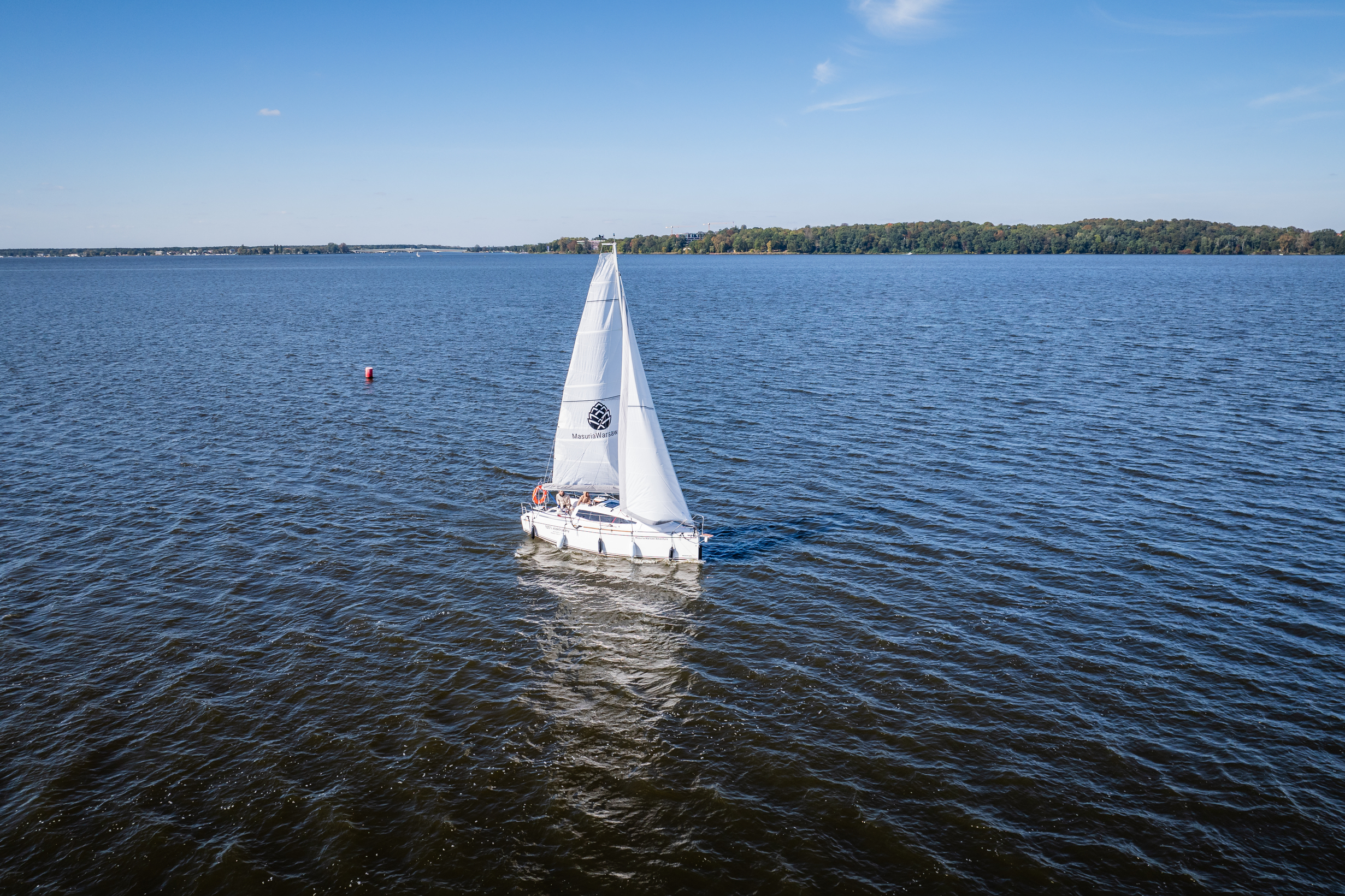NOWOCZESNY JACHT ŻAGLOWY NA JEZIORZE ZEGRZYŃSKIM